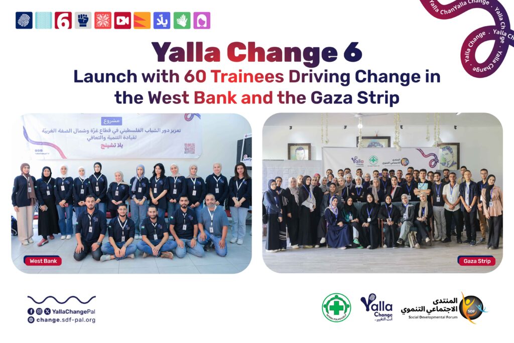 The Social Developmental Forum launched the sixth season of its Yalla Change program simultaneously in the Gaza Strip and the West Bank, marking the notable first-time inclusion of northern governorates in the program, in partnership with Norwegian People’s Aid – NPA. The Forum held the Yalla Change 6 training in both locations from September 27 […]