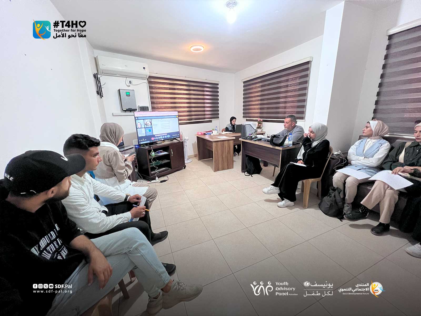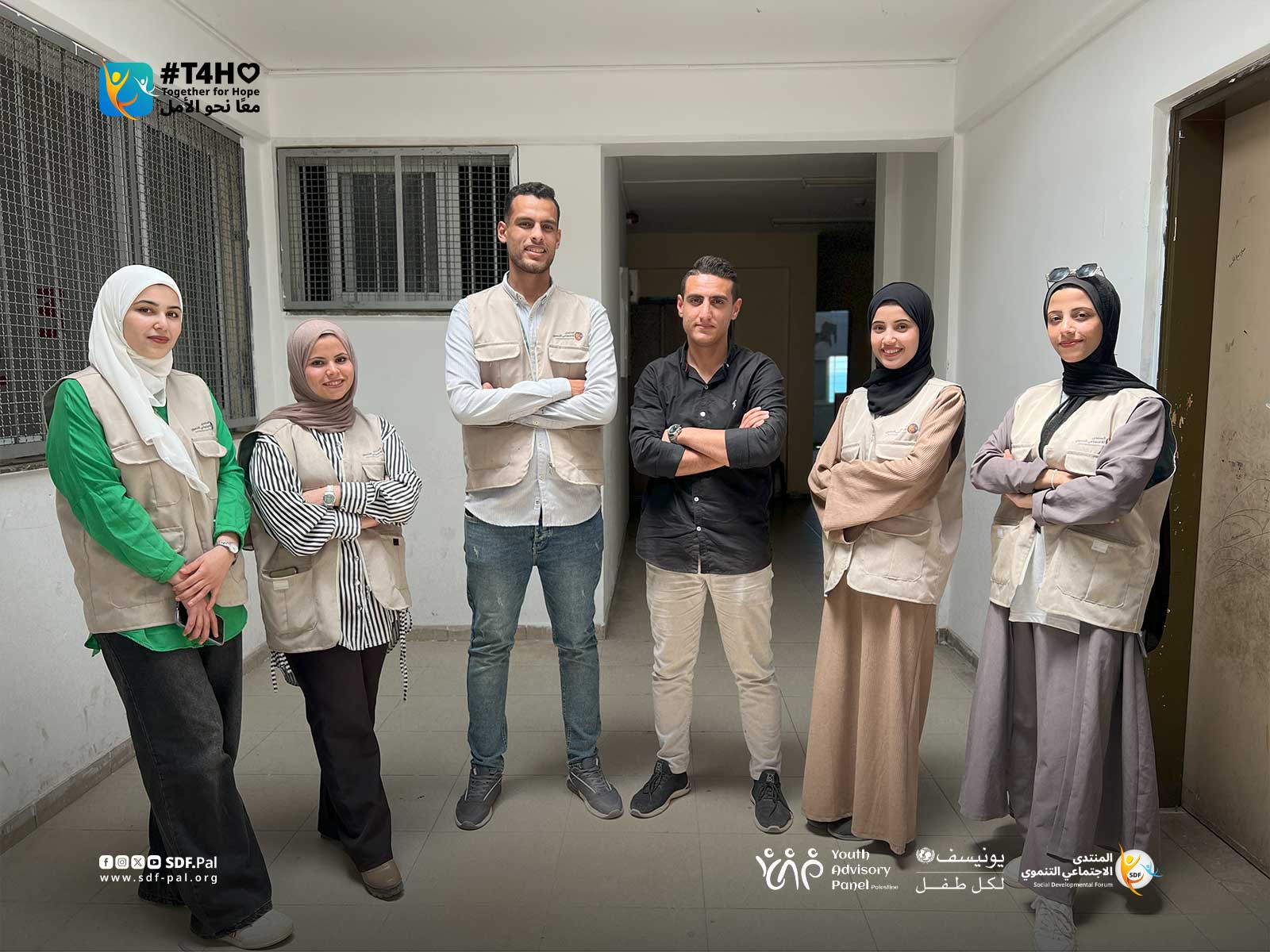 The Accountability Team within the Together For Hope (T4H) network continues to play a significant role in monitoring activities inside SDF’s safe learning spaces across the Gaza Strip. Their work aims to advance transparency and integrity of the education process as part of the project “Youth Networks to Enhance Wellbeing and Education for Children and Adolescents,” implemented by the Social Developmental Forum (SDF) in collaboration with the Youth Advisory Panel (YAP) and funded by the United Nations Children’s Fund (UNICEF).